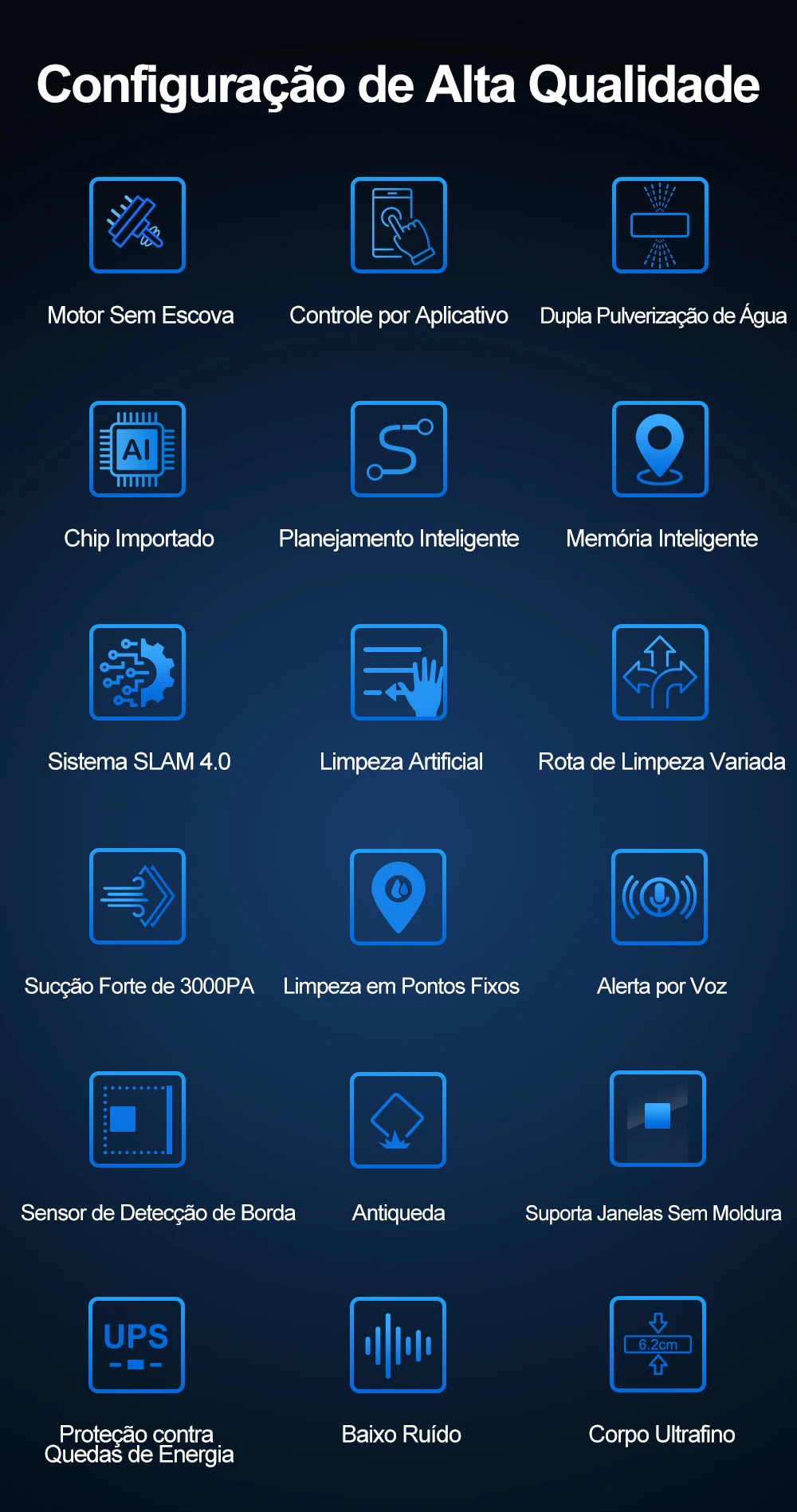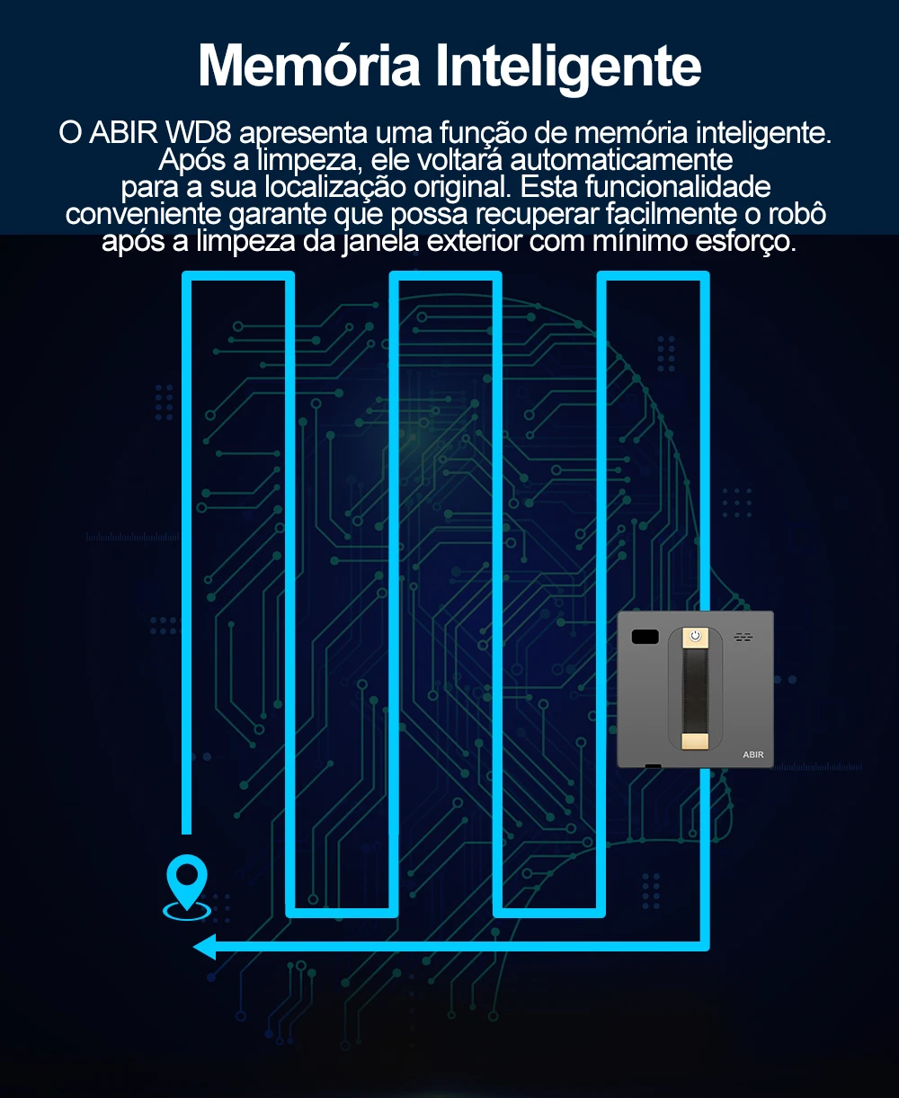 Plano inteligente de limpeza com memória, ele vai voltar para onde começa quando terminar a limpeza. Fácil pegarar o robô quando limpeza do revestimento.